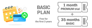 - The BASIC PLAN is provided free of charge for the first 3 years (includes a 1-month PREMIUM trial: 1 month + 35 months).